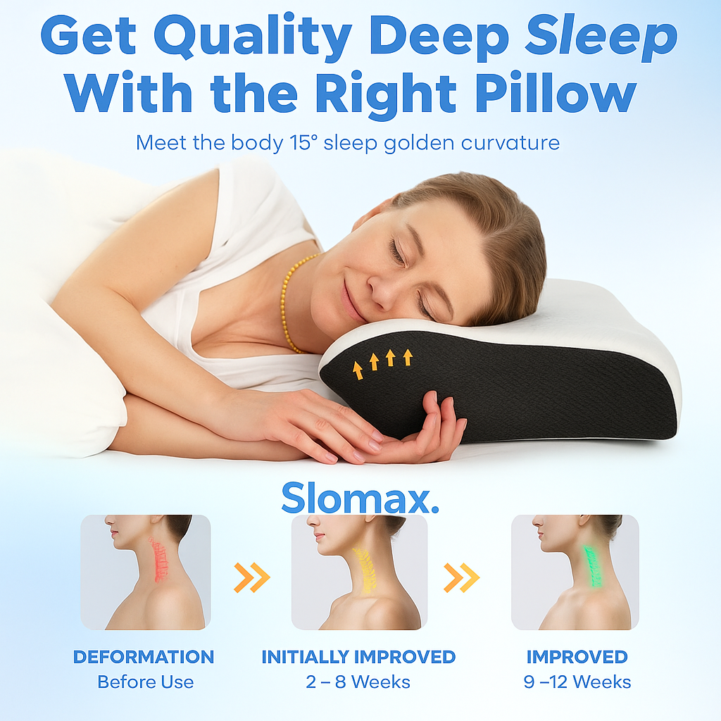 Crafted from premium slow-rebound memory foam, the Slomax Contour Pillow adapts to your body’s natural curve, providing balanced softness and support for every sleeping position.