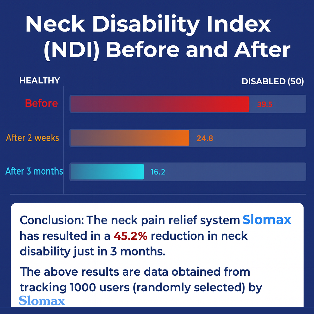 Conclusion: The neck pain relief system Slomax has resulted in a 45.2% reduction in neck disability just in 3 months.