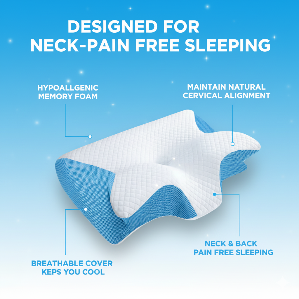 Most people toss and turn because their pillow doesn’t support the natural curve of their neck — leading to stiffness, soreness, and restless sleep.
